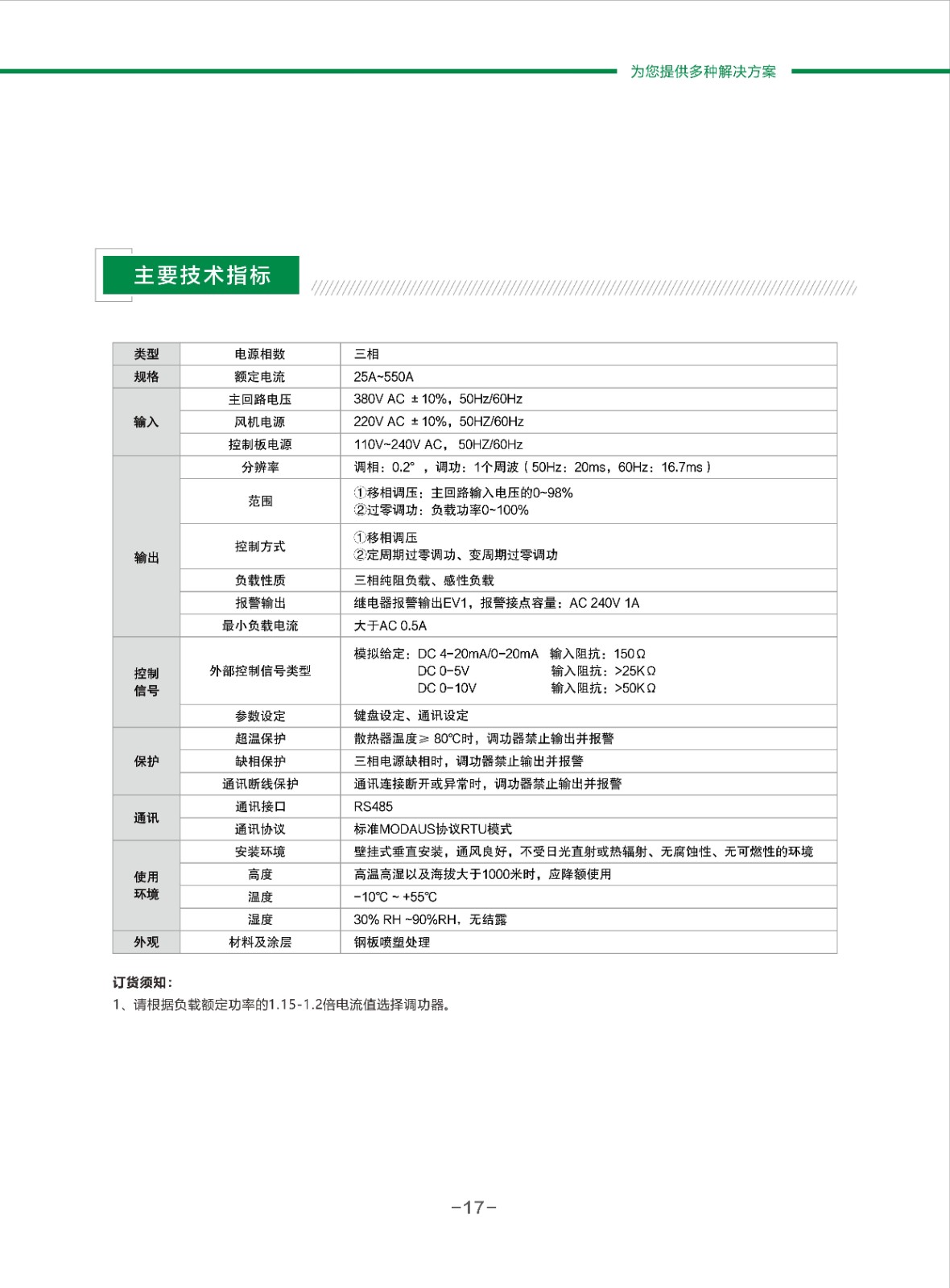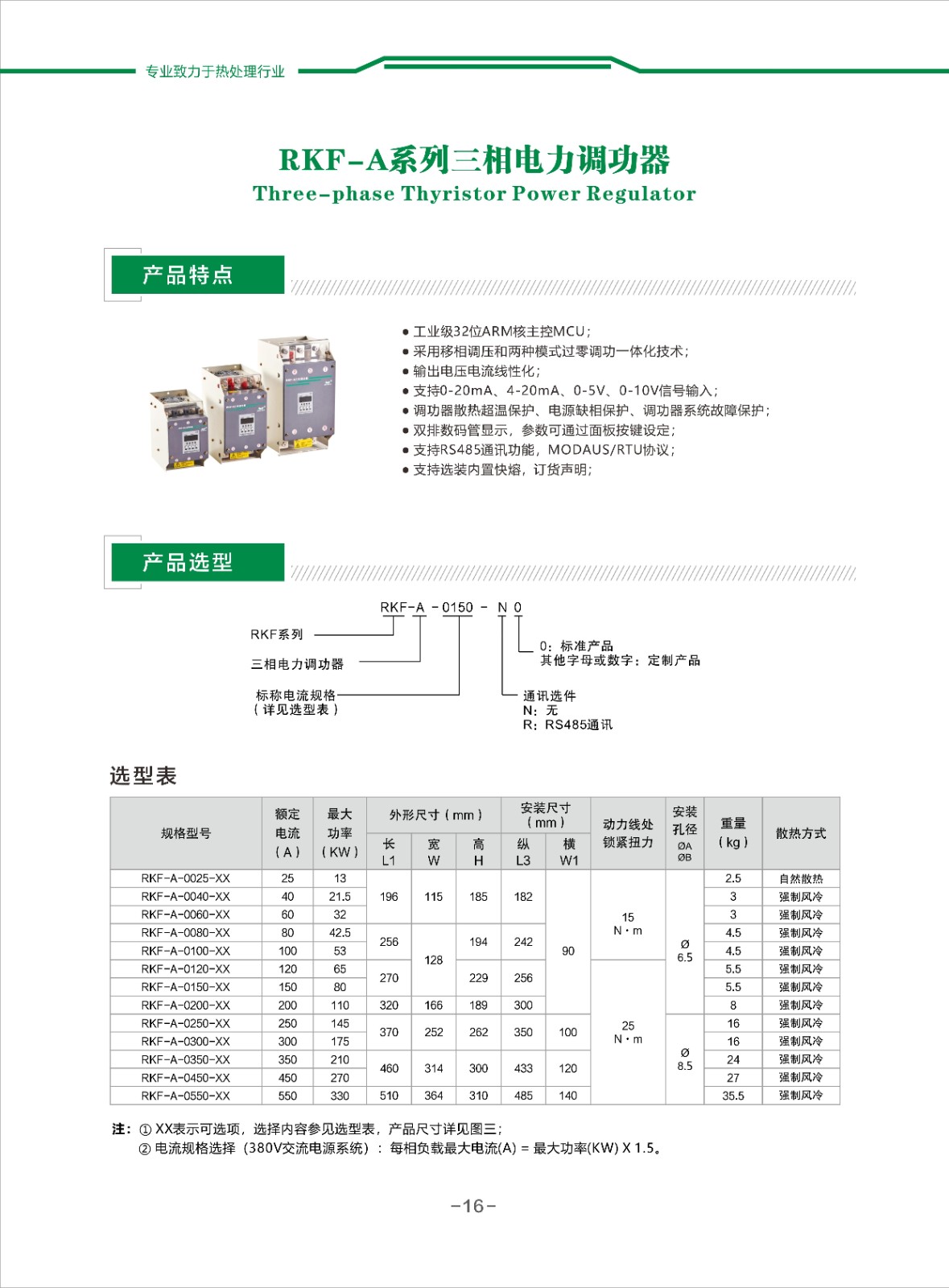 ★工業級32位ARM核主控MCU; ★采用移相調壓和兩種模式過零調功一體化技術; ★輸出電壓電流線性化; ★支持0-20mA、4-20mA、0-5V、0-10V信號輸入(默認4-20mA,其他訂貨聲明); ★調功器散熱超溫保護、電源缺相保護、調功器系統故障保護; ★雙排數碼管顯示,參數可通過面板按鍵設定; ★支持RS485通訊功能,MODBUS/RTU協議;